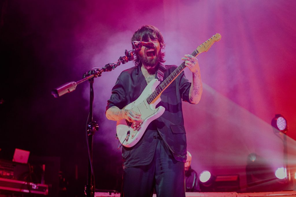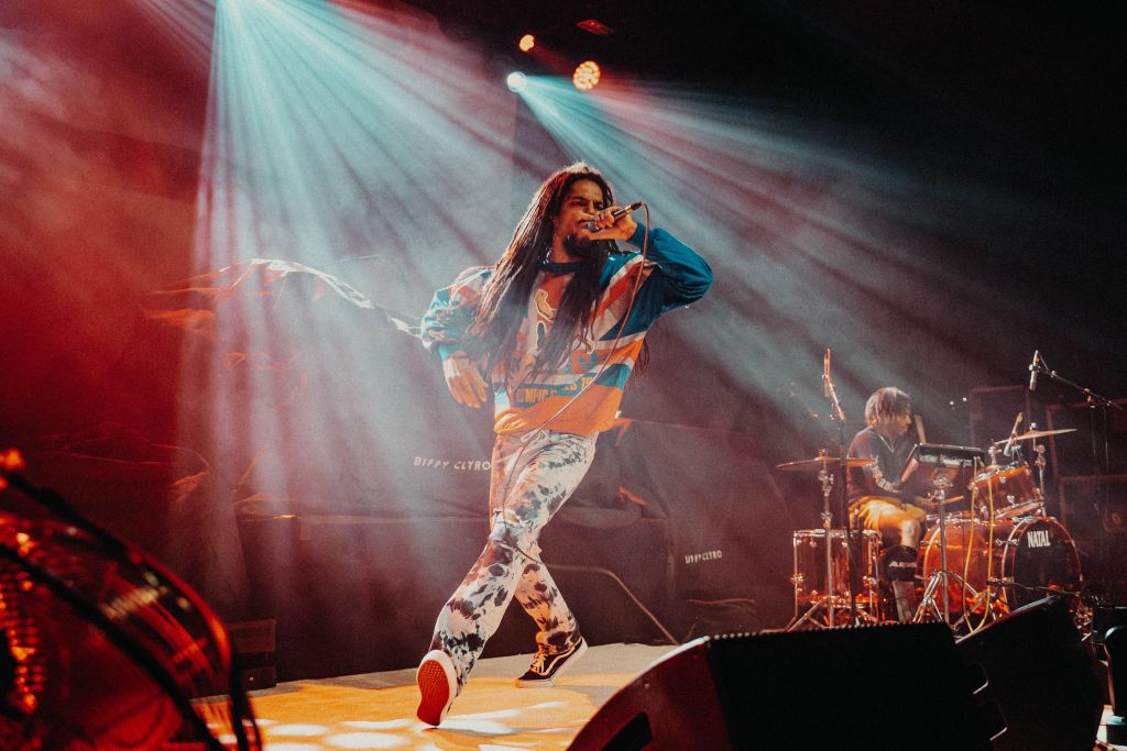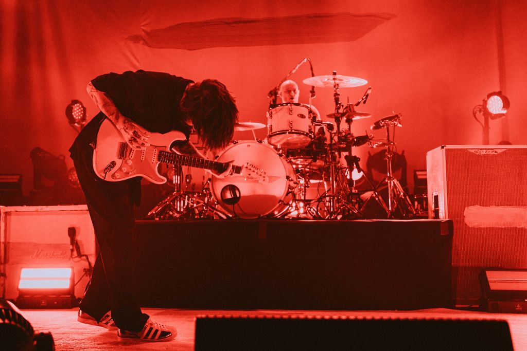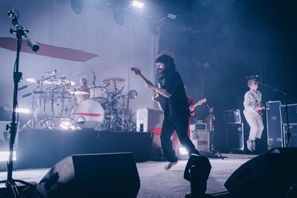 Après une brève vérification des pass sanitaires, nous entrons dans la salle qui se remplit très vite. Les balcons sont déjà bondés et la fosse compacte. A 19h30, les lumières s’éteignent et les membres de Bob Vylan entrent en scène. Ce sont eux les heureux élus qui ont la chance d’ouvrir pour Biffy Clyro. Le duo, un chanteur et un batteur, délivre une musique punk, se mêlant avec du grime. Il délivre son message sans mâcher ses mots, et Bobby Vylan ne se prive pas de lâcher un “Il faut tuer la reine Elisabeth II, elle a assassiné Lady Diana”. Des paroles que certains spectateurs auront du mal à accepter. Mais le public semble se prêter au jeu, et Bobby Vylan viendra même chanter un morceau au milieu de la fosse.