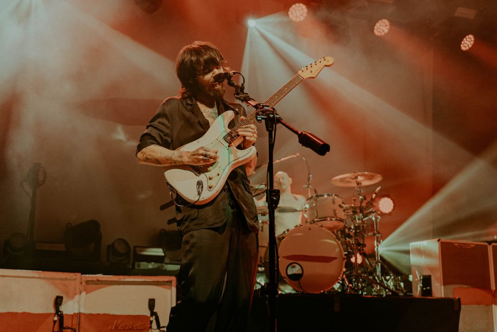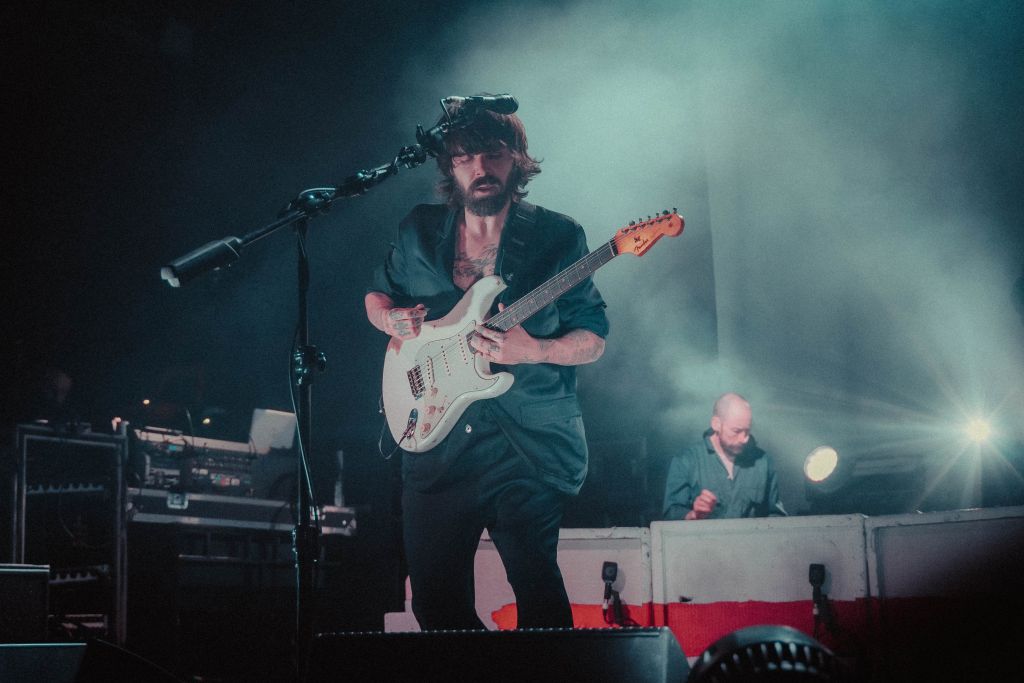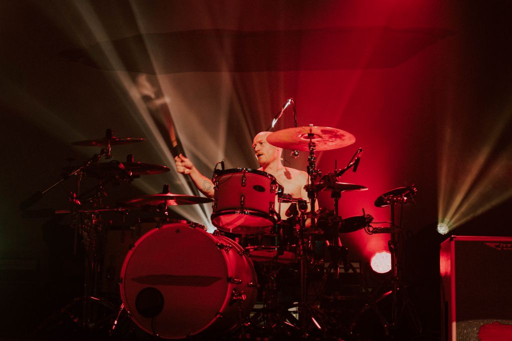 Une petite demi-heure plus tard, lorsque la salle devient sombre, on entend les premières notes de synthé de “DumDum”, morceau d’intro du dernier album. Mike Vennart et Gambler, les deux musiciens additionnels live, font leur entrée, puis c’est au tour de Simon Neil, et des jumeaux Ben et James Johnston d’arriver dans la fumée. Après cette intro toute en douceur, “A Hunger In Your Haunt” retentit, et la foule est en délire. Les riffs ravageurs de Biffy Clyro résonnent et le public hurle les paroles.