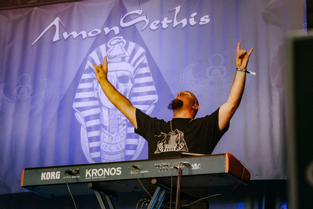 Sacrés vainqueurs du tremplin Plane'R Fest 2025, les Lyonnais investissent la grande scène avec un spectacle mythologique hard‑rock / power metal. Le chanteur commence masqué, avant de révéler sa voix. Le casque s’illumine, les torches flambent, des porteurs de bâtons enflammés incarnent l’Égypte ancienne. Le set, tiré des quatre albums et deux EP, avec des morceaux comme « The Legacy From the Past », « Mask of Wrath » ou « The Blood Red Temple », en hommage à la reine Nitocris, opère une bascule entre performance visuelle et musicalité solide.