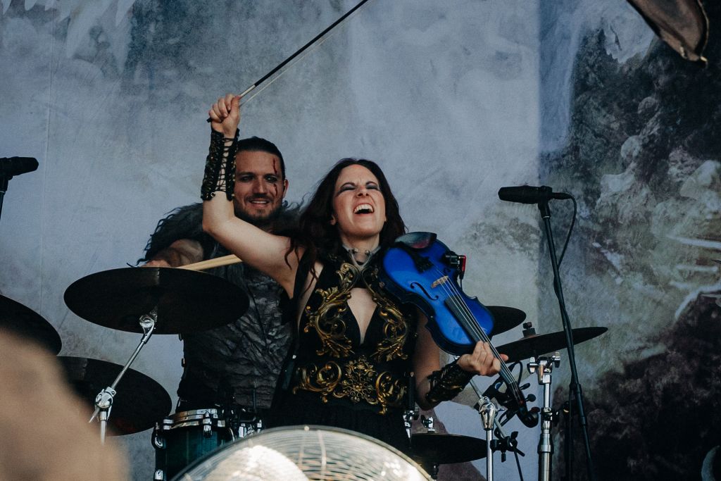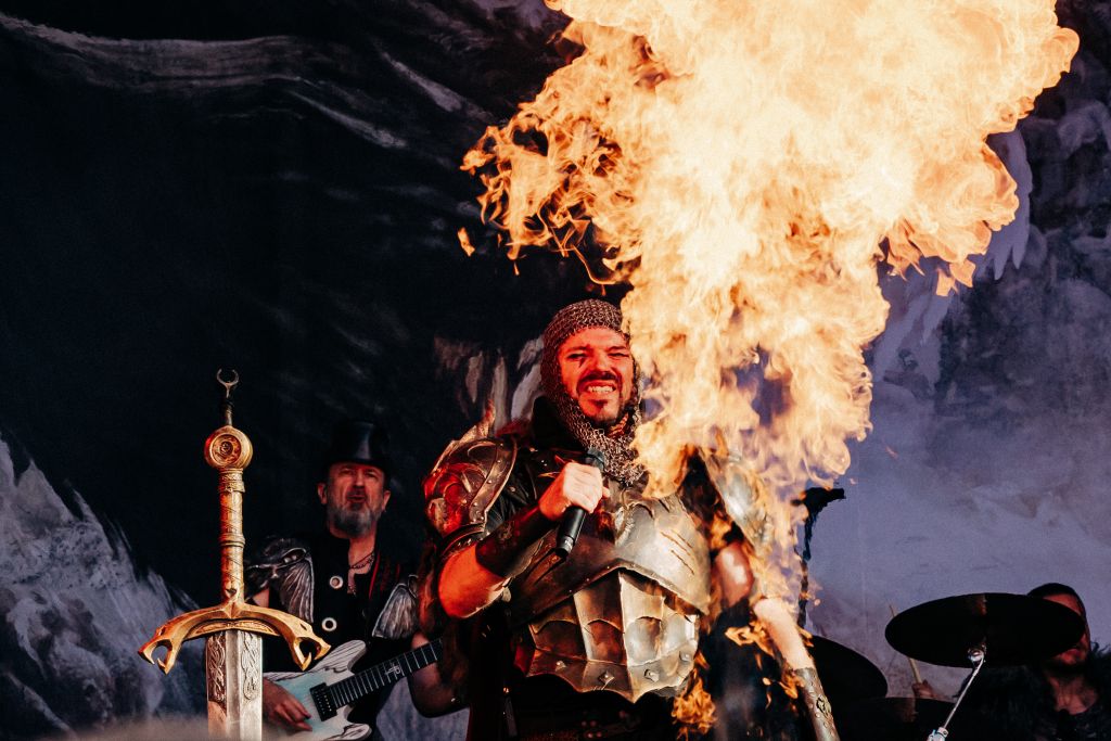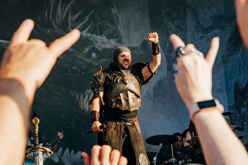 À 19h35, le groupe allemand reprend la scène après l’annonce de l’annulation d’Ultra Vomit ; fiers successeurs (ce sont un peu les Gloryhammer allemands), les Germaniques lancent une ambiance médiévale-épique. Avec une cornemuse, des costumes aguerris, deux épées en déco et des danseuses au bâton enflammé, ils entraînent le public dans un set festif et participatif. Ils scandent « Hey hey hey », mêlent tubes comme « SGFRD Dragonslayer », « Memento Mori », « Untot im Drachenboot », « Knightclub », « Kampfzwerg » . Pyro et bonne humeur : parfait antidote à la canicule (sauf pour les flammes).