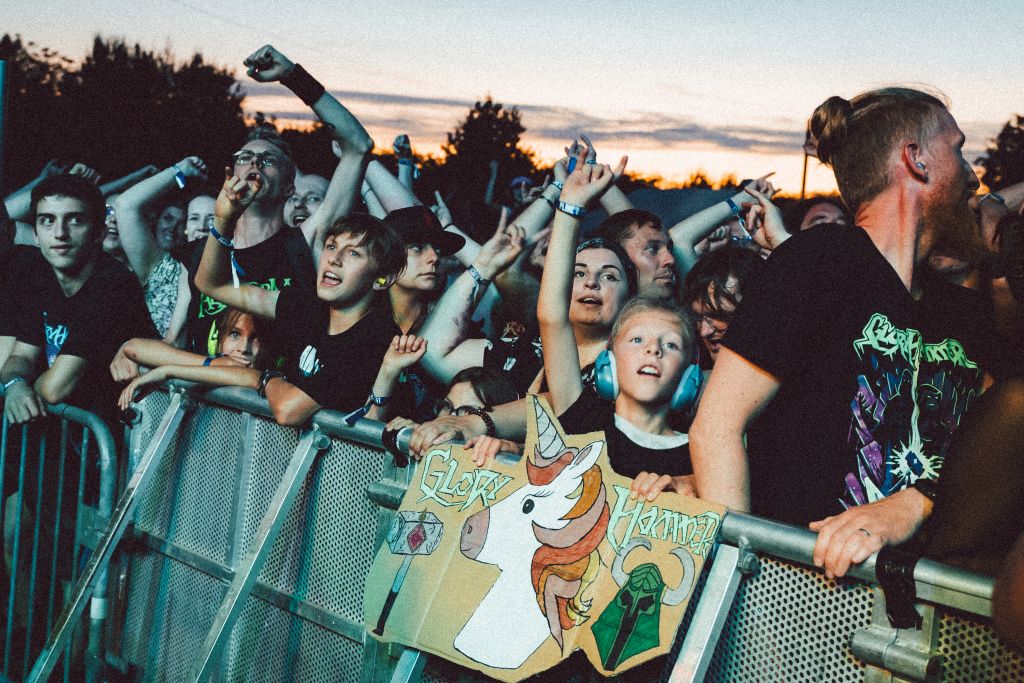 Avant le set de Gloryhammer, un petit gobelin vient faire des acrobaties en tous genres sur scène, afin de faire patienter les fans, bien présents devant la scène. Il faut le dire, l’univers heroic fantasy de Gloryhammer ne laisse pas indifférent. Costumes flamboyants, capes, bandeaux, collants verts à la Peter Pan… on aperçoit même des pancartes avec des licornes au premier rang. La fosse est totalement conquise. De « Fly Away » à « Angus McFife », les fans hurlent chaque refrain, lèvent les poings et multiplient les slams.