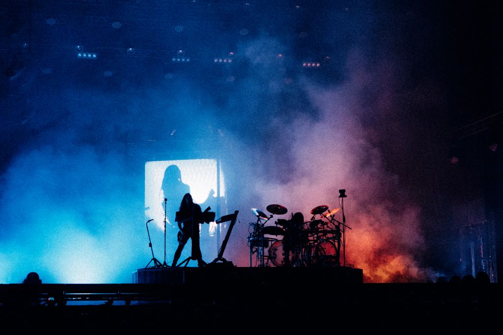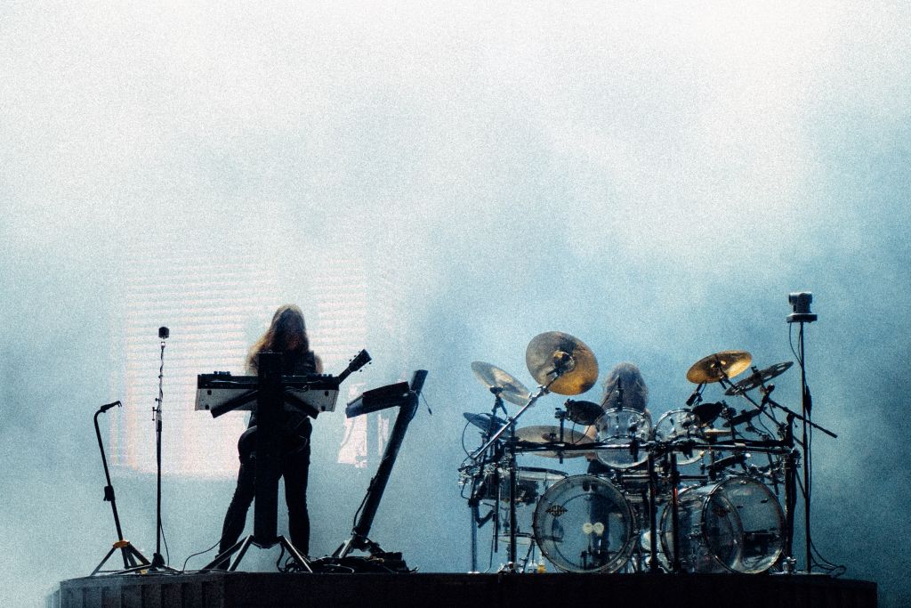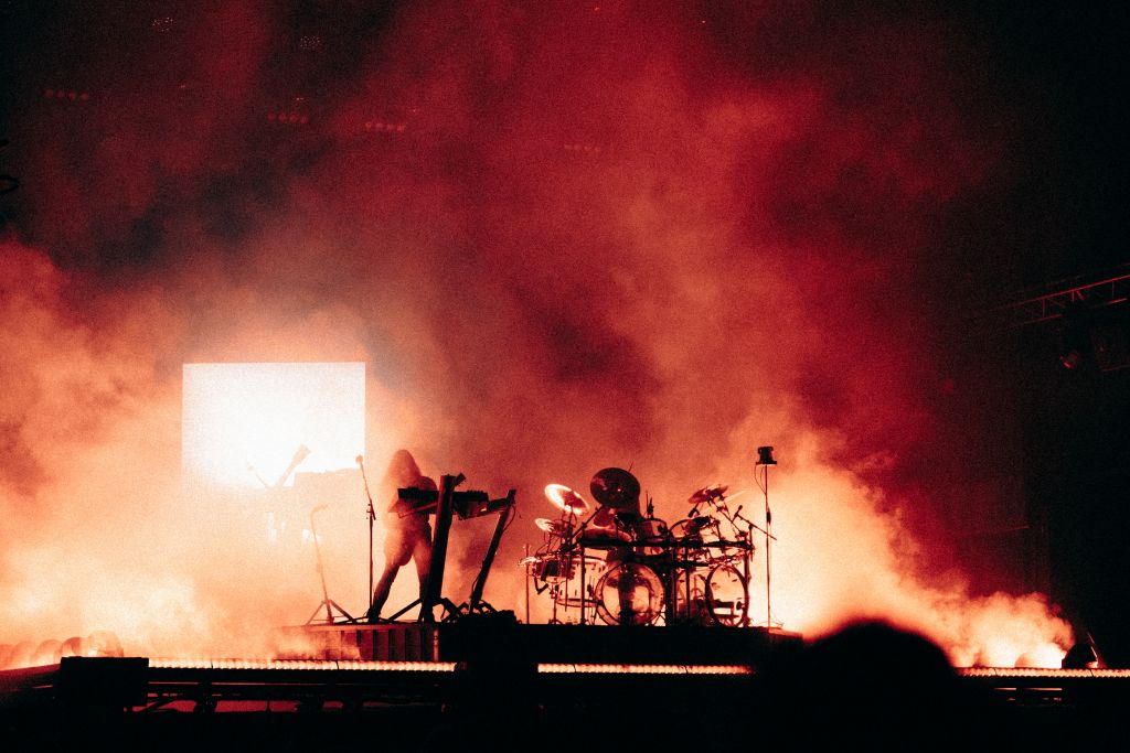 Le show atteint son apogée sur « Tainted Empire », morceau final où l’intensité visuelle et sonore explose. Les jeux de lumières, déjà impressionnants tout au long du set, s’emballent dans une dernière salve hypnotique. Chacun des deux musiciens, figé sur sa plateforme, semble dominer la foule comme deux maîtres de cérémonie orchestrant un rituel futuriste.