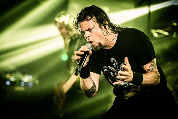 Après une bonne demi-heure de battement, la tête d’affiche fait son apparition et entame le concert sur « Blood of the Levant », issu du dernier album en date Verdict. D’emblée, on est saisi par la fougue de l’ensemble. L’expérience du groupe saute aux yeux et aux oreilles, et si les premiers rangs entendent parfois quelques pains du lead guitariste Michael Wilton, l’ensemble reste maîtrisé et très réussi. Le chanteur Todd La Torre, qui a remplacé Geoff Tate en 2012, est particulièrement impressionnant, tant on a l’impression d’entendre le disque.