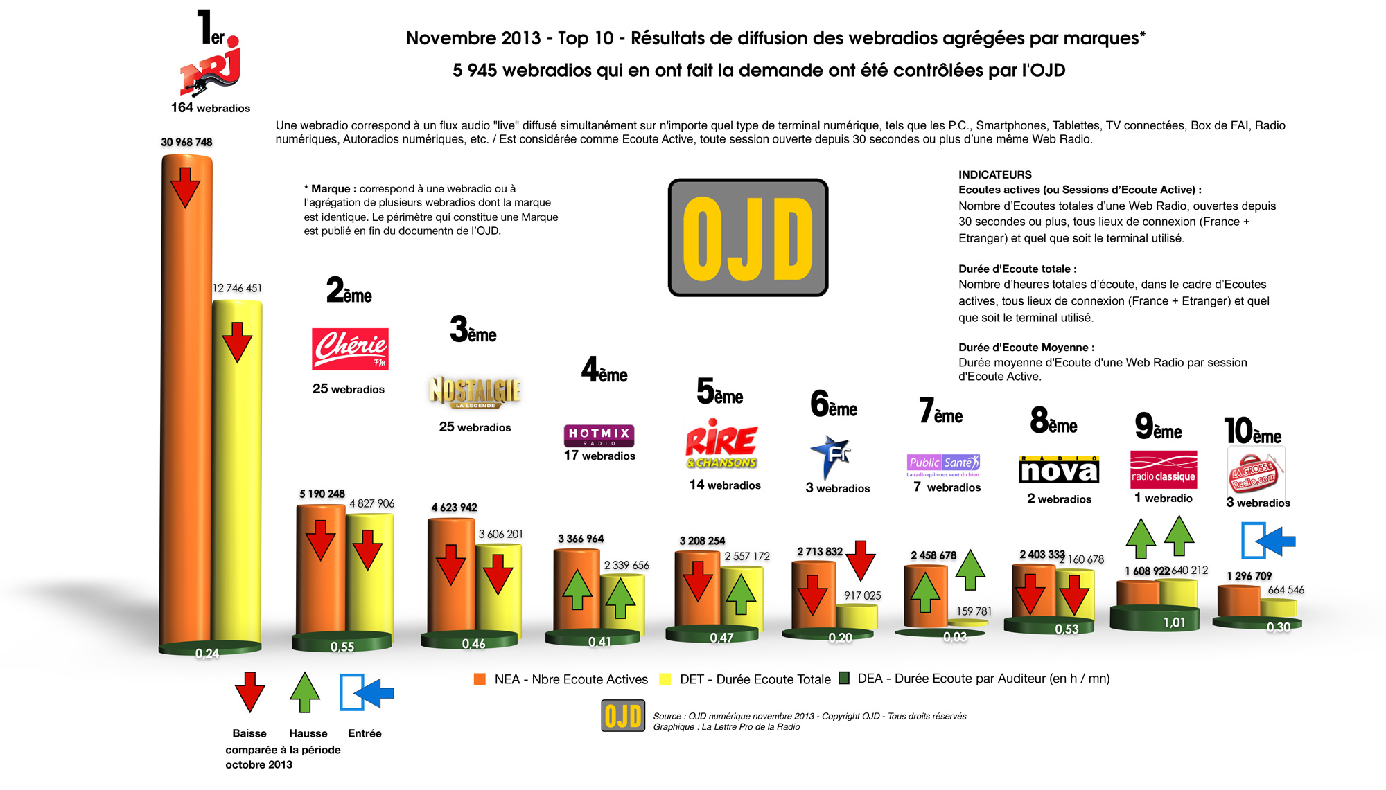 * sessions actives : nombre de sessions d'écoute supérieures à 30 secondes. Ce classement ne concerne que les webradios adhérentes à l'OJD.