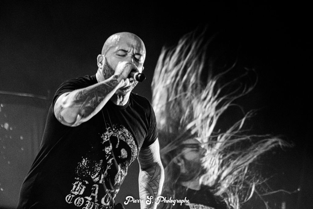 Fer de lance de la dernière galette, "Obscene Repressed" embarque la totalité de l’assemblée dans un puissant circle pit d’entrée. Comme des morts de faim, Pierre Arnoux, Emmanuel Dalle et Julien Truchan mobilisent les troupes sur le breakdown, les headbangs s’enchainent en même temps que les reprises en cœur du refrain. "The Starving Beast", "Implore The Negative" et "Nails" ont été piochés dans Obscene Repressed afin d’intégrer la setlist live. Quel choix judicieux, l’accueil de la fosse est à la hauteur de la puissance et de l’investissement des quatre protagonistes.