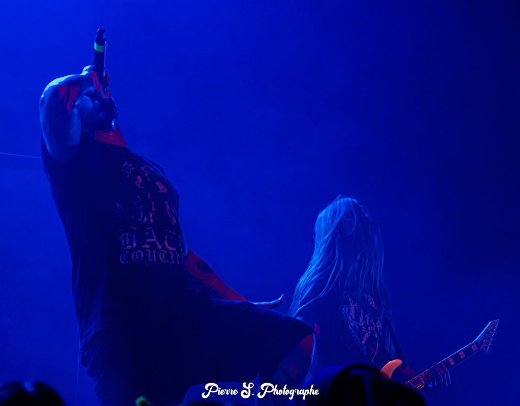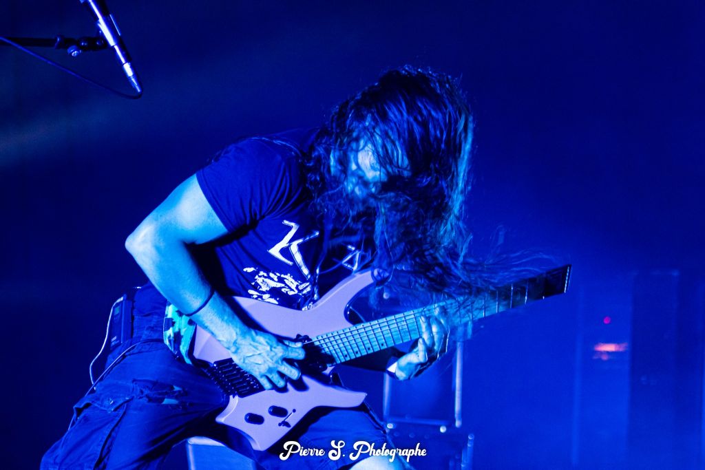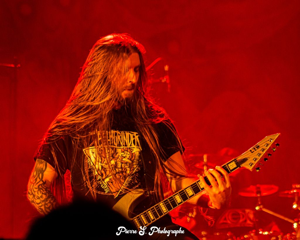 Comme pour Aethra, sixième et dernier album studio des Bordelais, c’est "Wolfsmond" qui ouvre le bal. Le moins que l’on puisse dire c’est que ça commence sur des chapeaux de roues. Le son est nettement plus fort que pour les deux groupes précédents, nous pouvons aisément le constater grâce au sonomètre plaqué sur la droite de la scène. "Here Die Your Gods" prend la suite avec une énorme double et une vitesse rythmique impressionnante. Malgré cela, la fosse est peu réceptive, seulement quelques headbangs animent les breakdowns. Il faudra attendre "The Axe of God" et ses énormes salves de blasts, double et screams sous les flashs des stroboscopes pour que le public se bouge un peu plus.