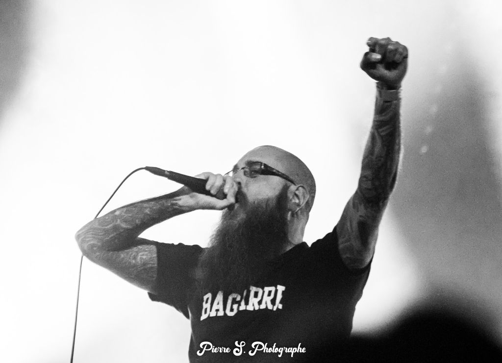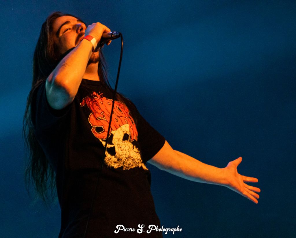 Le quatuor a la volonté d’en découdre et c’est avec cinq minutes d’avance au programme qu’ils font leur entrée sur la scène du Fil. Quoi de mieux que "Worship", qui introduit également le dernier opus, pour commencer les hostilités. Les pogos s’enchainent ainsi que les stage diving. Le son est brutal, les riffs de Jordan Bonnevialle et Olivier Dupont incisifs, et que dire du chant de Florian Garrigue. Le dernier des Mohicans du line up d’origine arbore fièrement un t-shirt floqué sobrement "Bagarre". Et grâce à ses enchainements de growls, screams et pig squeals, la bagarre a réellement lieu dans le pit.