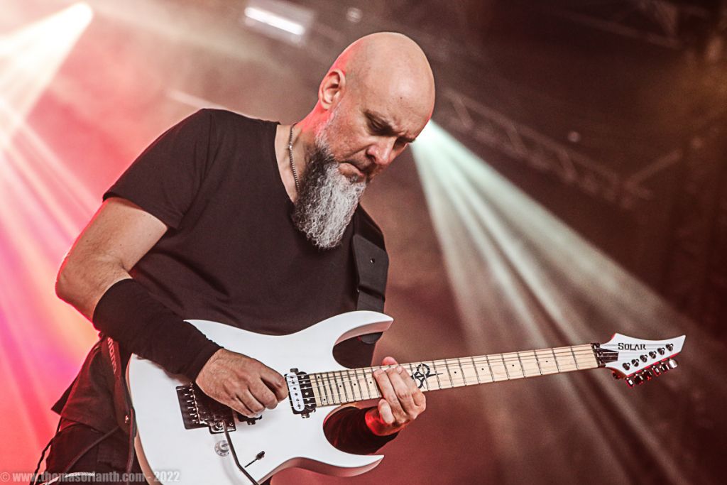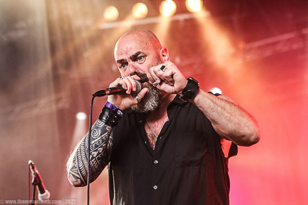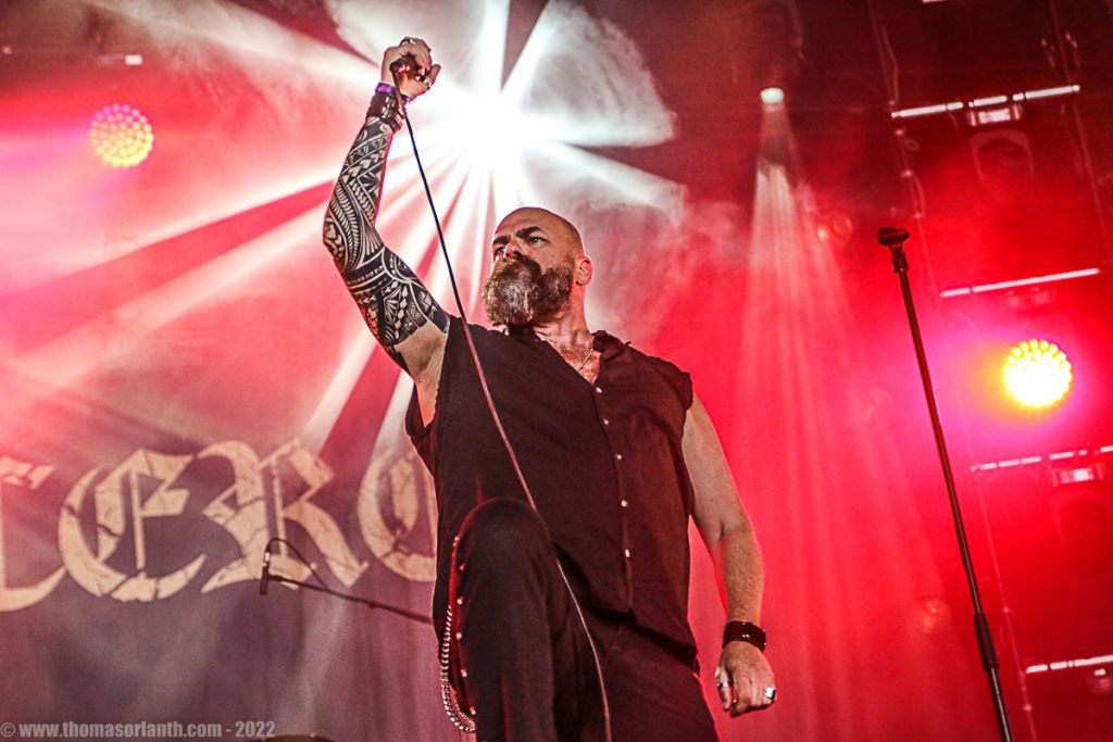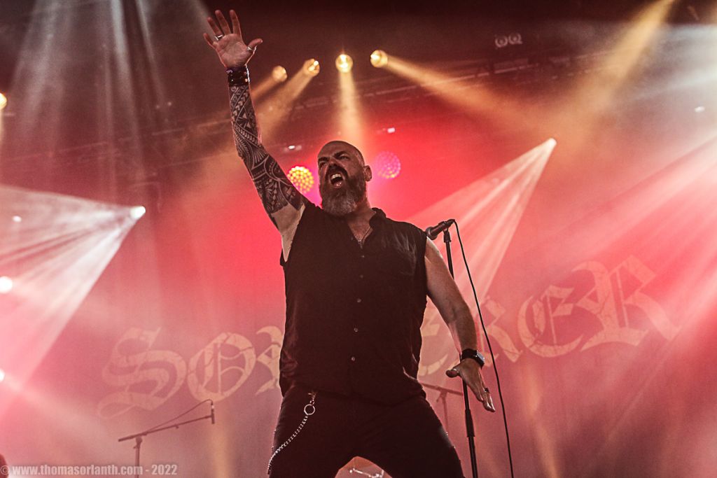 Derrière le micro, Engberg force le respect, avec un chant lyrique et puissant, parfois heavy. Nous citions Candlemass précédemment, il est vrai que la référence saute immédiatement aux oreilles tant le doom épique de Sorcerer s’en inspire. Mais on ne peut s’empêcher de songer également à Black Sabbath, notamment sur les travaux les plus épiques des Anglais réalisés dans les années 80 et 90 avec Dio et Tony Martin. Aidés par d’excellentes conditions sonores, les cinq membres du groupe peuvent faire participer le public, à l’image d’Engberg qui enjoint les spectateurs à chanter le refrain de « The Sorcerer » ou « The Hammer of Witches » et son « Burn ! Witch ! Burn ». Mais c’est « Lamenting of the Innocent » qui fait le plus grand effet sur les festivaliers car en huit minutes, il condense tout le talent de la formation. Riffing pesant dans la plus belle tradition du doom, envolées lyriques à donner la chair de poule, mélodies accrocheuses ou encore growls discrets proposés par le bassiste live Justin Briggs, tout y est !