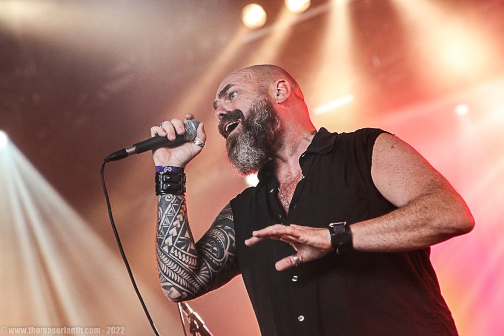 Les Suédois entrent en scène derrière Anders Engberg (chant), un drapeau à l’effigie du groupe fièrement levé. Il s’agit ici du seul artifice déployé par le groupe qui va séduire l’auditoire par la seule force de ses compositions et par l’attitude irréprochable des musiciens. En effet, à l’image de Kristian Niemann (guitare, ex-Therion) qui ne cesse de sourire et de chanter les paroles des titres pour lui-même, l’ensemble des musiciens affiche une grande forme et se fait clairement plaisir. Il en est de même pour Peter Hallgren (guitare), qui sur le côté gauche de la scène est contraint de jouer assis en raison d’une jambe cassée quelques jours plus tôt, mais qui ne semble pas s’en soucier.