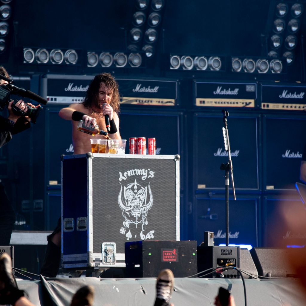 Joel profite aussi de la venue au Hellfest pour avoir quelques mots pour Lemmy et termine d'ailleurs avec "It's All For Rock N Roll" en prenant la pose de la statue présente devant la Warzone. Enfin, de l'ancienne statue plus précisément. Après un dernier circle pit sur "Running Wild" et un sit-down demandé par Joel au public terminé par une explosion de bandelettes, c'en est terminé du concert. Les corps, fatigués mais contents de s'être donnés, doivent encore tenir jusqu'au bout et c’est une Mainstage bondée que l’on a du mal à quitter avec le concert des Guns en approche (de nombreuses personnes restent déjà devant la scène pour conserver un bon placement). Quant aux membres d’Airbourne, après avoir enchainé deux concerts au Hellfest, ils reprendront bientôt la route pour se rendre à Paris dès le lendemain en ouverture du concert d’Iron Maiden à la Paris Défense Arena.