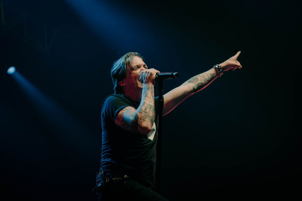 Il en faudra peu pour que Chuck Comeau (batterie) s'avance près de la scène et aille se prendre un bain de foule en crowdsurfant sur les bras des nombreux fans. "Welcome To My Life" nous offre un bond dans le temps de 20 ans en arrière. Finalement, le groupe n'a pas pris une ride. Un seul petit morceau du dernier album Harder Than It Looks (2022) est joué : "Iconic", sinon, les Canadiens ont préféré la jouer sans risques.