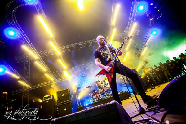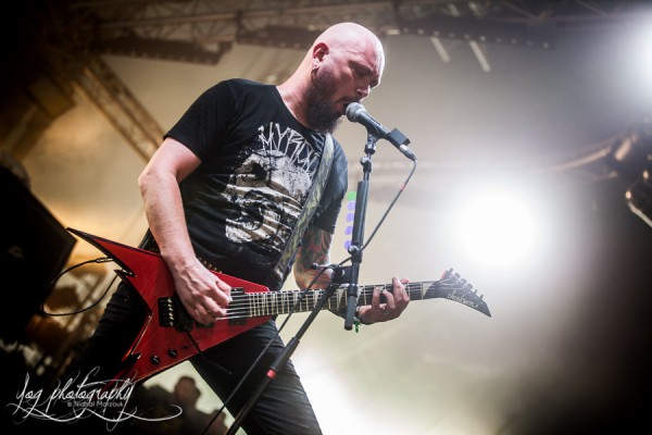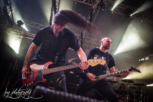 Hervé Coquerel entre le premier sur la scène et va se placer derrière son kit de batterie sous les acclamations du public qui n’a pas oublié à quel point le batteur est doué. Mais dès les premières notes de "A Bloody Oath", tous les regards se tournent vers le frontman, Stéphane Buriez, comme toujours très à l’aise sur scène. La communication entre le leader de Loudblast et les spectateurs est exemplaire, bien que facilitée par l’absence de barrière du langage.