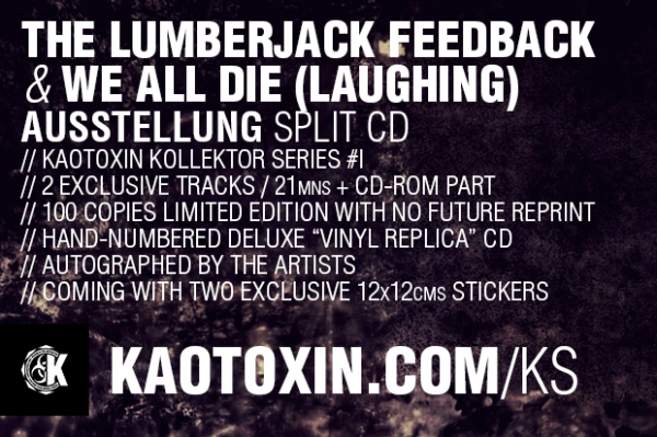 L’excellent et très dynamique label français Kaotoxin a lancé le 23 novembre le premier volet des Kaotoxin Kollektor Series. Un concept de crowdfunding via le site Indiegogo, pour des séries d'ultra collectors limitées faites pour les passionnés de musique et fétichistes des supports physiques. Ce concept sera inauguré par un split de The Lumberjack Feedback et We All Die (Laughing) dont voici des extraits ici.