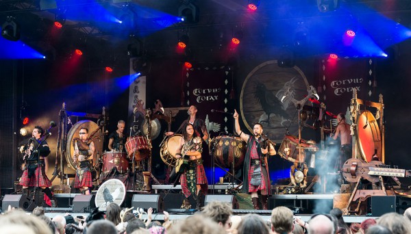 Le public est venu en très grand nombre en cette fin d’après-midi pour voir les géniaux Allemands de Corvus Corax. Dans une atmosphère de furie totale et de symbiose avec leurs fans, le groupe enchaîne les titres sans aucun temps mort.