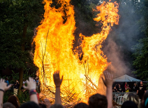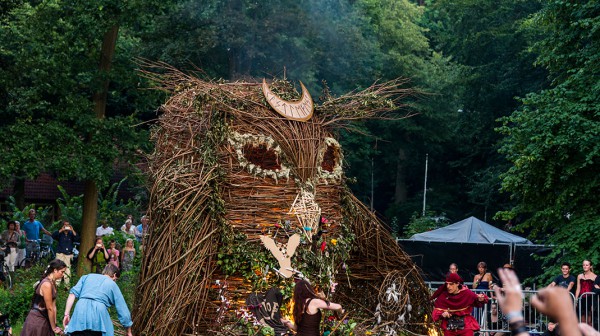 ”¨L’événement rassembleur du Castlefest arrive en ce début de soirée, la destruction par le feu du Wicker Man. Cette année c’est un hibou géant qui partira symboliquement en fumée devant une grande partie des festivaliers fascinés et hypnotisés par les flammes mais aussi par la musique et les danses rituelles. Tradition du festival, tout le monde peut venir déposer son offrande, objet ou lettre, bientôt calcinée par le feu.