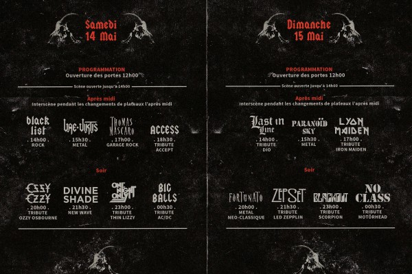 Vous trouverez ci-dessous quelques morceaux des groupes présents mais aussi le programme ainsi que quelques informations pratiques sur la page Facebook de l'événement.