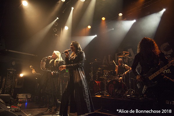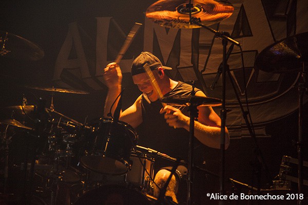Il n’est pas encore 19h30 quand Almanac entre en scène. Le groupe respecte parfaitement le cahier des charges de la soirée : du metal symphonique avec deux vocalistes et force effets de claviers qui ne font pas pour autant oublier les guitares.