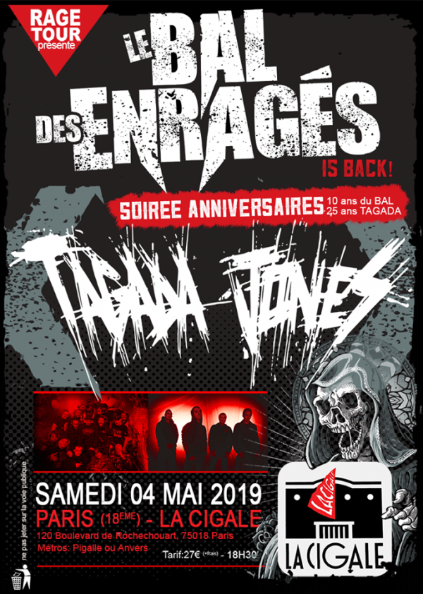 Le Bal des Enragés, c'est ce qui se fait de mieux en musique énervée. Le concept est simple: Tagada Jones, Parabellum, Lofofora, Black Bomb A, Punish Yourself, et quelques autres se retrouvent pour un show de folie, 2 ou 3 heures de tonnerre, tout ça pour rejouer à la sauce Métal-Punk ta playlist préférée.