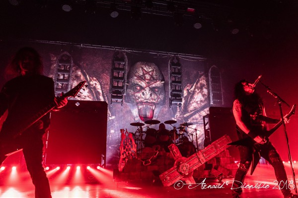 Alors que résonne "Run to the Hills", le classique d'Iron Maiden, le public semble bien compact dans la fosse pour accueillir Kreator. Même si le groupe est loin d'être rare dans nos contrées ces derniers temps, c'est toujours un plaisir de les revoir en concert et l'assurance de passer un excellent moment. Cette soirée de décembre ne fait pas exception à la règle puisque dès que retentit "Enemy of God", c'est la folie dans le pit.