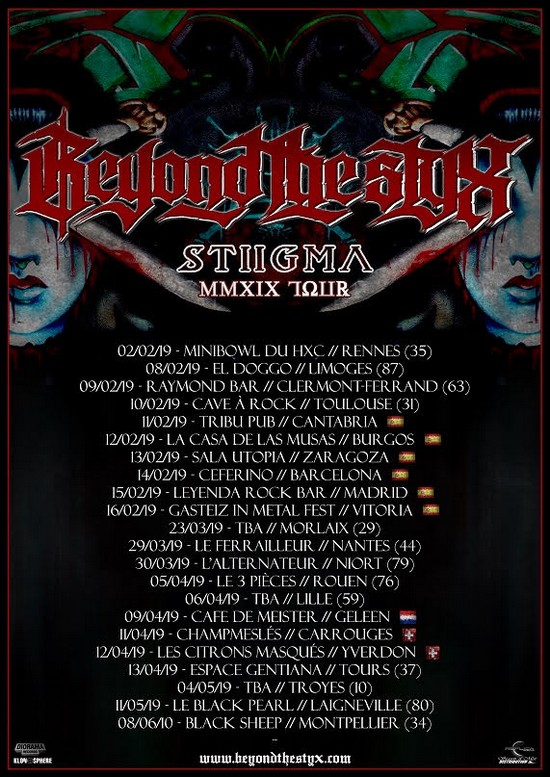 En France, Beyond The Styx passera notamment par Rennes, Clermont-Ferrand et Montpellier. Toutes les dates ci-dessous: