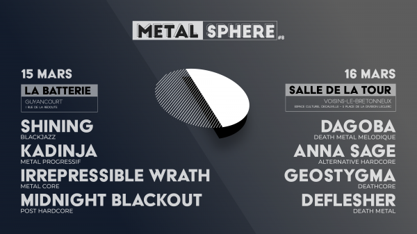 L'Association Met'Assos organise le Festival METAL SPHERE #8 les 15 et 16 mars prochain. Le festival aura lieu à La Batterie à Guyancourt (78) le vendredi 15 mars et à la Salle de la Tour à Voisins-le-Bretonneux (78) le samedi 16.