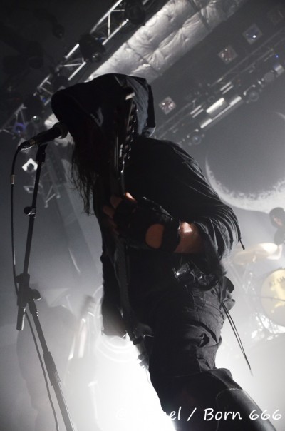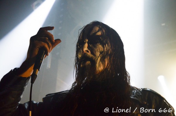 Il est toutefois certain que la fosse souhaite en premier lieu entendre du Gorgoroth. Et dès le début du set, on ne peut que le constater avec l'accueil réservé à "Sign of an Open Eye". La salle est comble, les spectateurs sont serrés mais dès les premières notes et l'arrivée du vocaliste, les pogos font des ravages dans le pit de Petit Bain, malmenant les photographes présents. Le contraste entre l'énergie de la fosse et ce qu'il se passe sur scène est saisissant car si Lust Kilman (guitare) et Eld (basse) headbanguent sur la petite scène, Gaahl, lui, se déplace tel un spectre avec beaucoup de théâtralité et de lenteur.