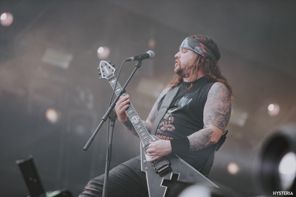 Côté son, on remarque que le chant criard de Tony Foresta est légèrement trop présent, couvrant une partie des guitares, mais rien de rédhibitoire. La prestation du gang de Richmond est puissante et pourtant le chanteur confie entre deux titres : "c'est la première fois que je dois courir pour rejoindre la scène, il y a trois-quart d'heures, nous descendions à peine de l'avion ! Je suis encore bourré !". Cela se ressent à peine ! Le combo ne manque pas non plus de rendre hommage à Slayer dont le dernier concert français est programmé sur cette même scène en fin de journée.