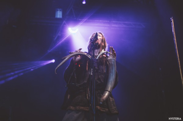 C'est avec une longue intro atmosphérique que le groupe prend place sur scène, derrière micros, percussions et autres instruments à connotation "viking" et médiévale. Pourtant dès que le groupe se lance dans l'interprétation de sa première pièce, le grésillement des fréquences basses devient rapidement insupportable et couvre tout le reste, du chant de Justine Galmiche aux parties de jouhikko (sorte de violon médiéval) joué par Pierrick Valence (ex-Phazm).