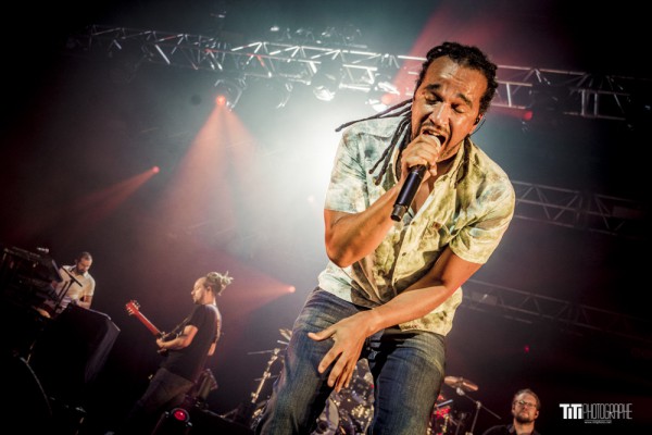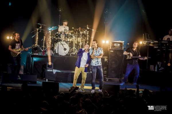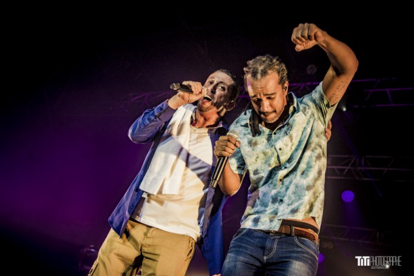 20h30. Le premier grand moment tant attendu est enfin arrivé et ce sont 5000 personnes chauffées à blanc qui étaient prêtes à accueillir Sinsemilia. Aux premières notes de l’introduction sous forme de medley, la foule massive était en liesse avant de frôler l’hystérie collective à l’arrivée de Mike et Riké sur le titre “Et Si”, qu’ils enchaînent avec “Feu de Vie”. Y’a pas de doute, dès l’entame du show on sait qu’on est à la maison.