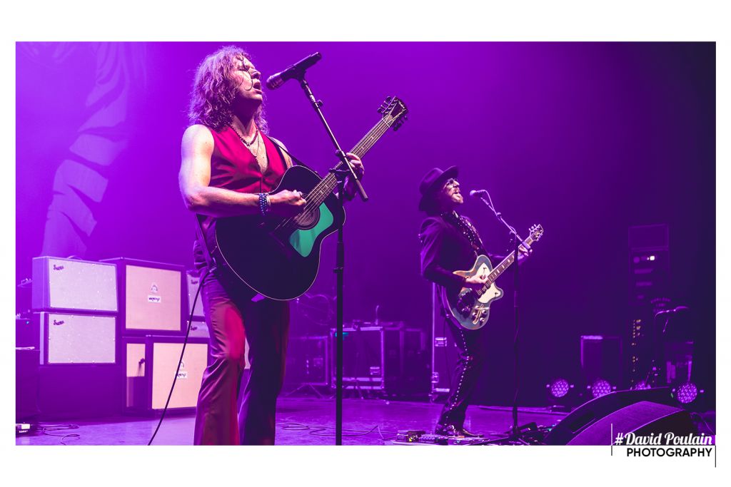 Si le premier titre “Mirrors”, issu du dernier album donne d’entrée le ton, c’est sur le suivant, “Do Your Worst” que les têtes - et le sol plastifié devant la scène - se mettent à bouger. Ce n’est que le début de trépidations sonores, autant que physiques ; le public tape du pied et reprend en choeur et à pleins poumons dans la fosse. Tandis qu’on lui amène une gratte électro-acoustique, Jay Buchanan se fend de l’indispensable “Bonjour, Paris” et entonne une version format balade de “Rapture”. “Darkfighter” qui suit nous la joue tout calme en intro pour se transformer ensuite en un blues-rock bien heavy. Puissante et juste, même dans les hauteurs, sa voix ne démérite pas de ses modèles. Idem pour son comparse Scott Holiday, mais quand bien même son jeu est aussi impressionnant que sa guitare à double manche, l’interminable solo sur "Face Of Light” était-il indispensable ? Et passons sous silence celui de Michael Miley, franchement barbant. Soyons honnêtes, ce ne sont que les seules fausses notes de la soirée ; les Rivals Sons auront livrés un show irréprochable, faisant allègrement appel au public et les acclamations de ce dernier les ont visiblement touchés.