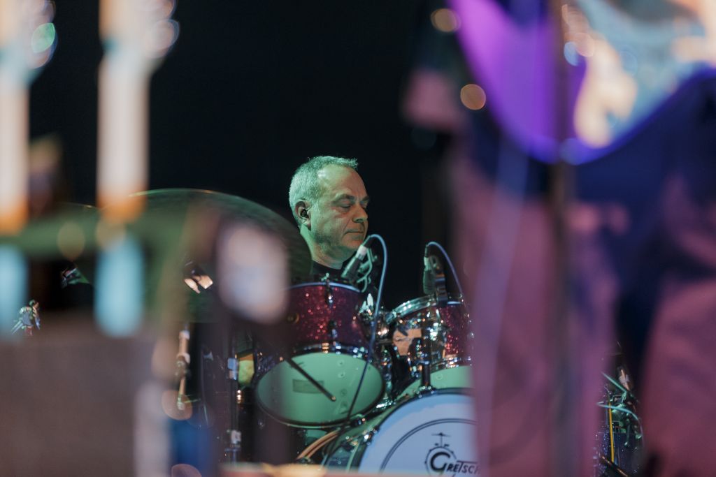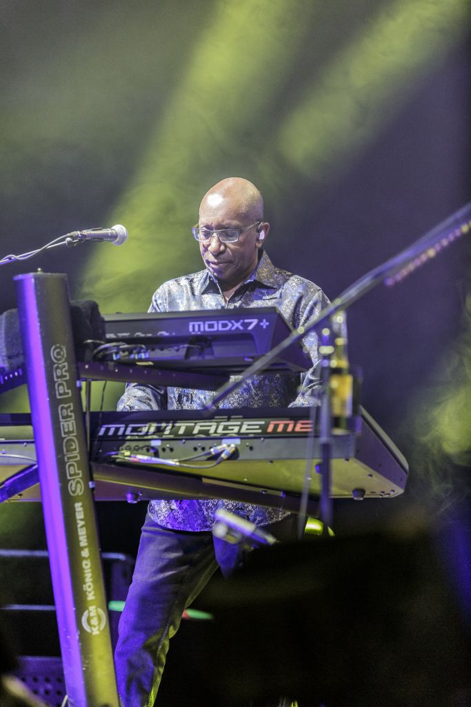 Heureusement pour nous, il ne suffit que de huit notes de Toto pour nous faire oublier le moment passé et nous rappeler pourquoi nous sommes là. Ce sont celles de "Child’s anthem", hymne instrumental qui introduit le premier album du groupe en 1978, ici joué en intégralité quand il peut souvent faire l’objet d’un medley - on se souvient de son apparition dans celui qui mêle "On the run" et "Goodbye Elenore", un régal ! Enchaîné avec "Carmen", situé quant à lui sur Isolation (1984), l’introduction est définitivement confortable pour le groupe qui assène à son public les mélodies qu’on lui connaît. Une fois l’émoi passé, on observe la scène pour réaliser que les membres que l’on imaginait présents ce soir ont finalement déjà été remplacés à l’exception de Warren Ham, multi-instrumentaliste qui dès "Child’s anthem" se balade sur l’avant-scène avec son saxophone. Pour le reste du set, il sera souvent relégué à l’arrière, alternant entre instruments à vent et percussions, ces dernières lui laissant peu de liberté de mouvement.