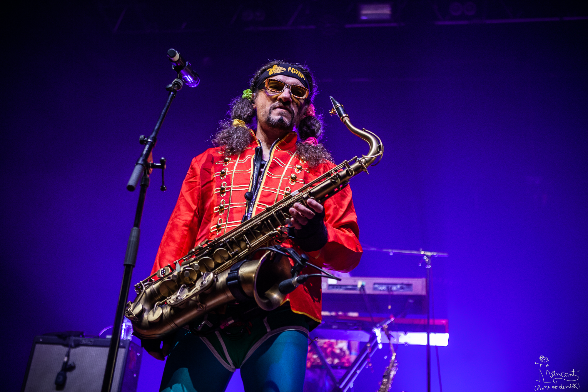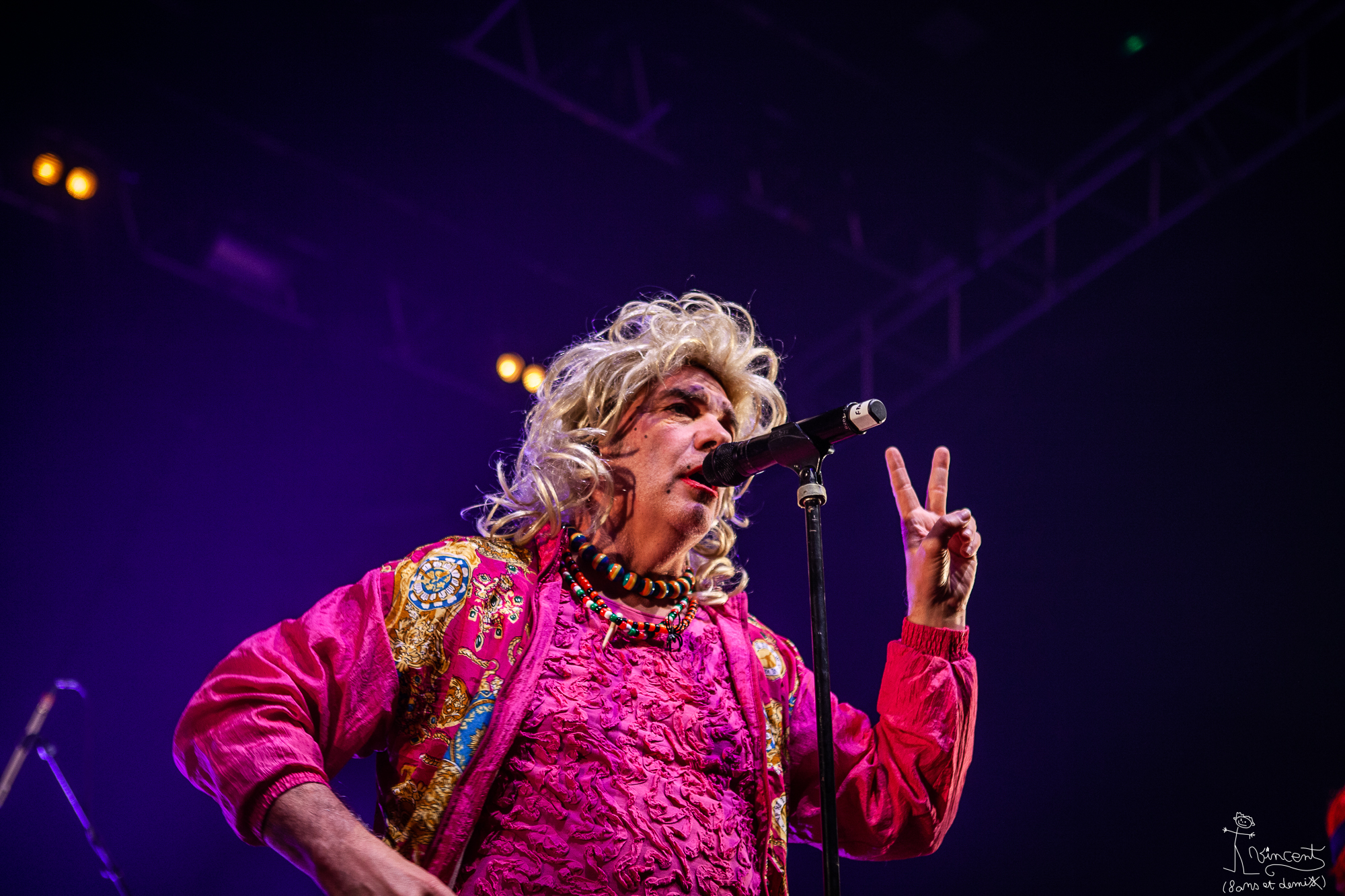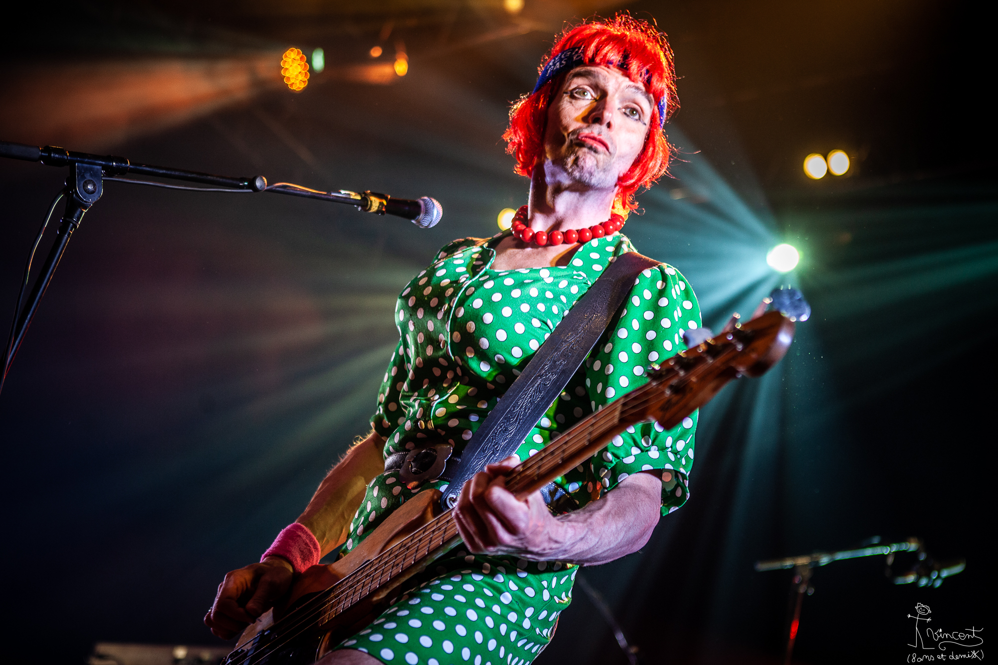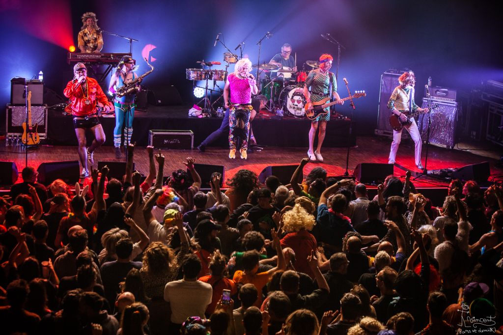 Après une courte pause nécessaire pour le changement de plateau et pour reprendre ses esprits après le passage tonitruant et corrosif de Didier Super, voilà que la soirée bascule dans une toute autre dimension avec l’entrée en scène de Marcel Et Son Orchestre. Après une petite introduction solennelle pour annoncer les festivités, le groupe balance d’entrée de jeu, le morceau « Petite Culotte » avec des costumes déjantés, des chorégraphies absurdes et une bonne humeur contagieuse en guise d’étendard. Pour l’occasion, Didier Super sera de la partie avec ses choristes sur ce premier titre, histoire de passer le flambeau de l’irrévérence à ses valeureux collègues de Boulogne-sur-Mer.