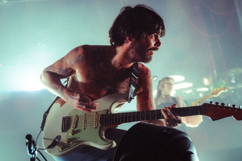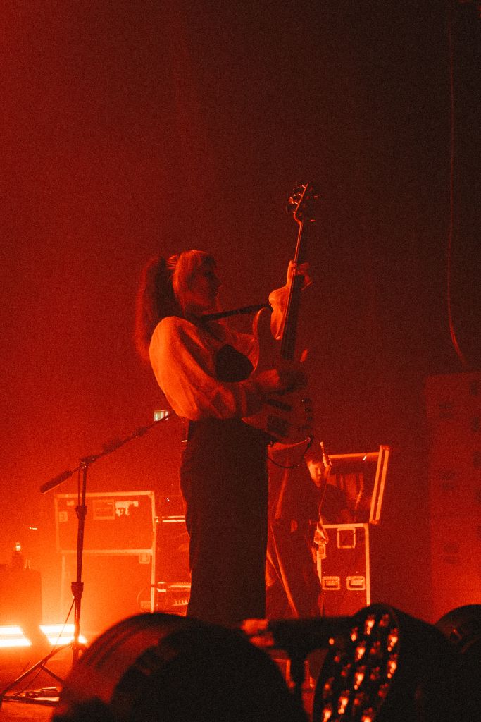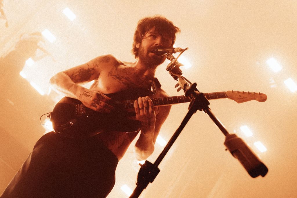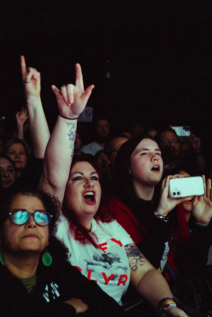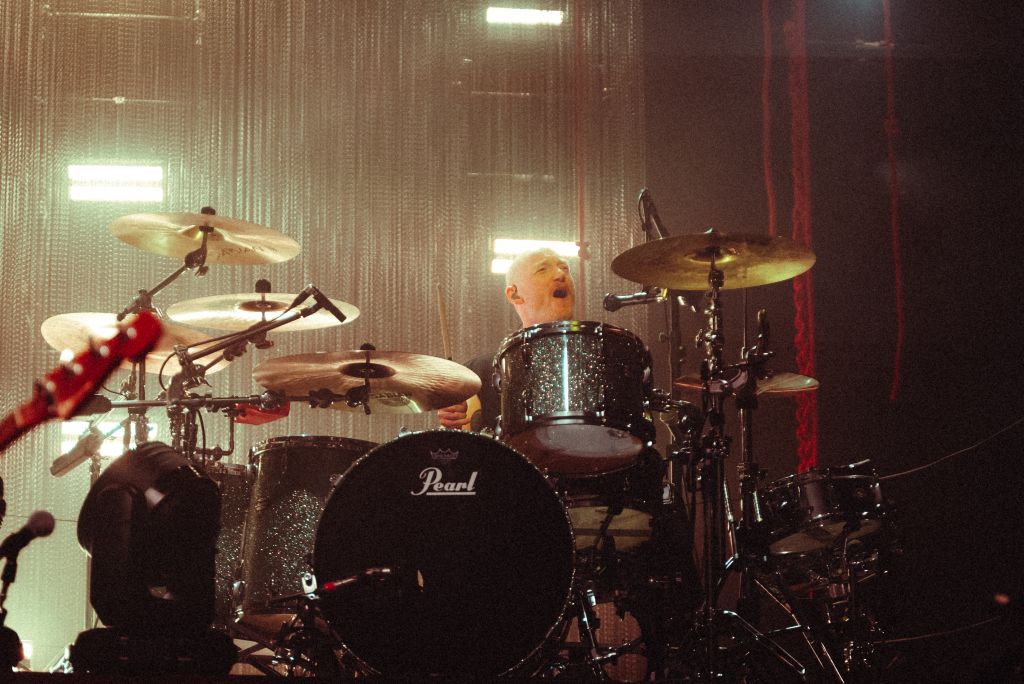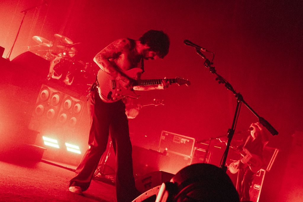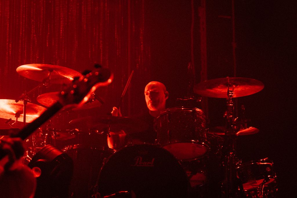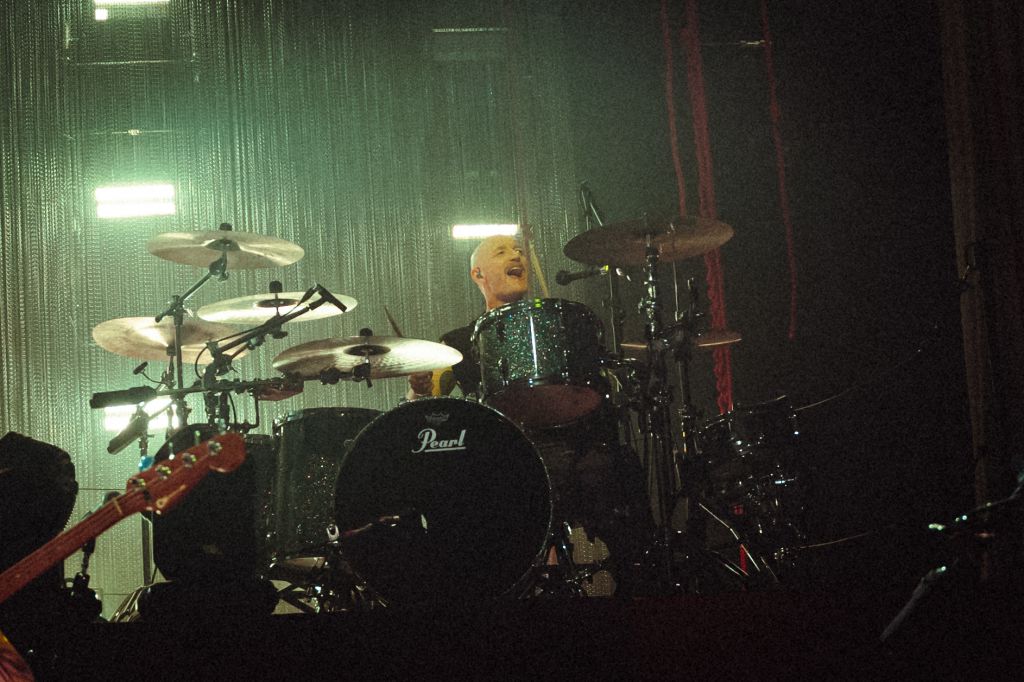 Biffy Clyro revient à l’Olympia après sa précédente date en 2022. Contrairement à celle-ci, le concert est cette fois complet, et cela se sent. Progressivement, la musique d’attente anodine prend de l’ampleur et attire peu à peu l’attention. Elle se transforme en bande-son électronique industrielle pleine de distorsions, jusqu’à devenir franchement désagréable. Cela réveille en tous cas le public qui se met à applaudir et scander des slogans.