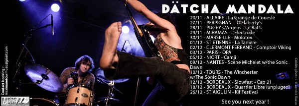 Le combo Bordelais passe le 3 décembre par Paris à l'OPA, concert à ne pas rater pour les vrais fans de Rock'n'Roll. Et pour ceux qui raterait ce show et pour ceux qui l'auront aimé, Dätcha Mandala sortira un EP Live en janvier prochain.