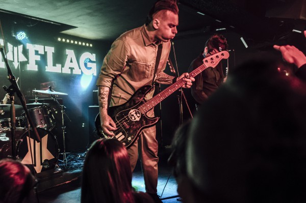 Ceci dit, le premier EP du trio date de novembre dernier, il a donc encore le temps d’affiner son style. Les compositions sont en tous cas efficaces et suffisamment entraînantes pour chauffer la salle comme il se doit. Un tout petit groupe de spectateurs – trois, pour être précis – lance un pogo dans la fosse, qu’il réussira à élargir à une douzaine de personnes. Probablement le plus petit pogo de l’histoire du punk, mais il est tout de même plus virulent que certains plus massifs. Sans être mémorable, la prestation du combo est une bonne mise en jambe avant la tête d’affiche.