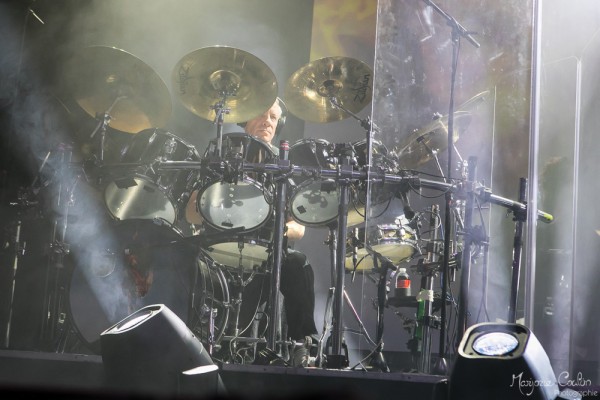 Et comme pour enfoncer le clou après ce début de set tonitruant, les Anglais enchaînent avec le mélancolique "Seasons End". Les arpèges de Rothery doublés par les pizzicati de l'orchestre donnent une nouvelle dimension à ce titre qui frôle la perfection. Puissance émotionnelle, subtilité harmonique, justesse d'interprétation, les onze musiciens sont en osmose totale sur cette composition qui restera comme le temps fort de la soirée. Et si l'on remarque que Steve Rothery reste plus en retrait qu'à son habitude, ses soli de guitare mettent toujours tout le monde d'accord.