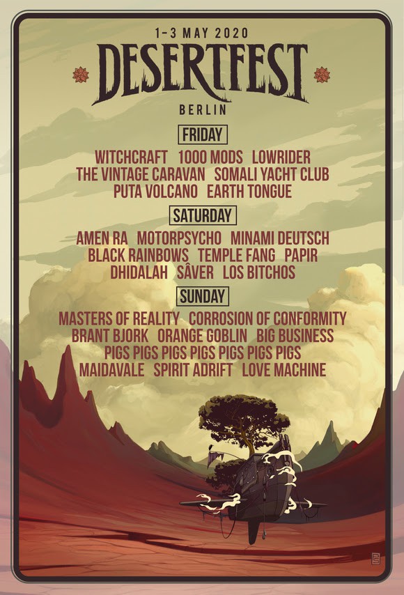 L’affiche est alléchante, le trio de rock stoner ukrainien Somali Yacht Club sera bel et bien présent, le groupe italien Black Rainbows se joint aussi à la programmation 2020 ! Et si ce n'est pas tout Corrosion of Conformity, Brant Bjork, Witchcraft entre autres partageront la scène de l’Aréna de Berlin. Une affiche de rêve qui ne compte pas moins de 25 groupes et qui aura lieu sur 3 jours. Les amateurs de riffs percutants et guitares grasses en auront pour leur déplacement !